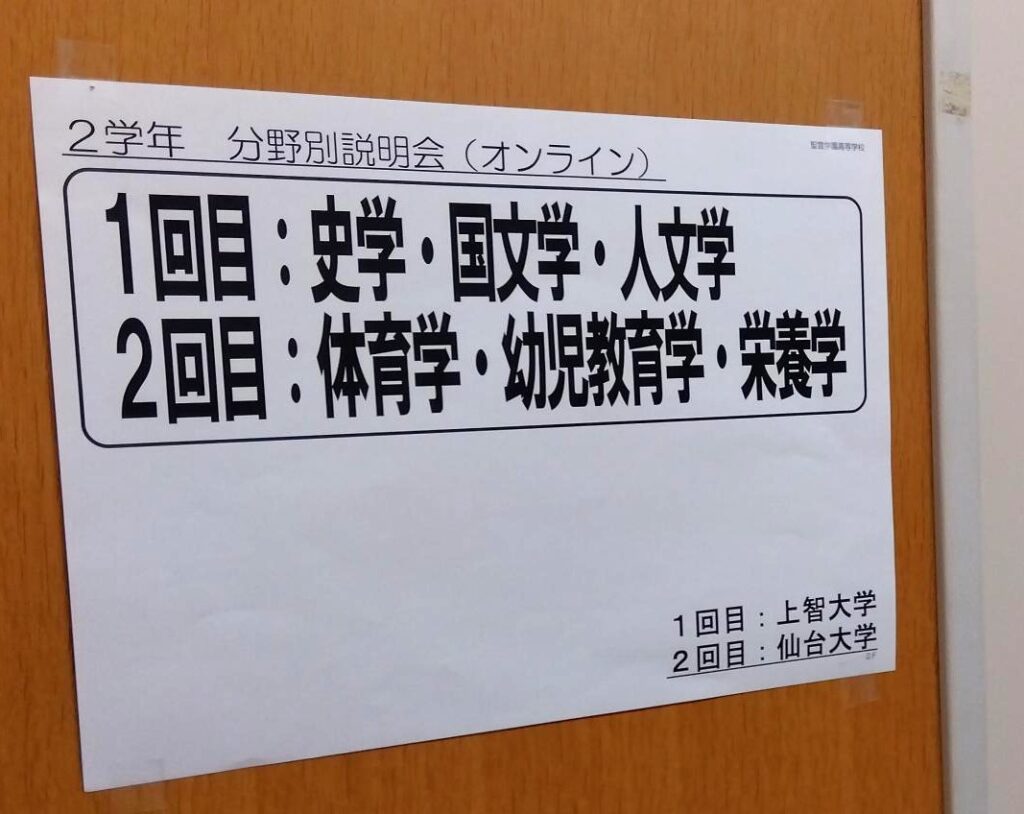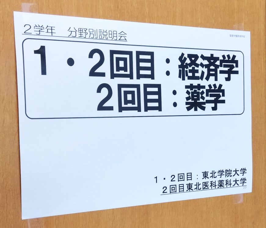 各会場では、生徒たちが真剣に説明を聞き、質問を投げかける姿も見られました。中でも最も多くの生徒が参加したのは、本校と高大連携を結んでいる上智大学でした。続いて、同じく高大連携校である日本赤十字東北看護大学南山大学の講座も人気を集めました。