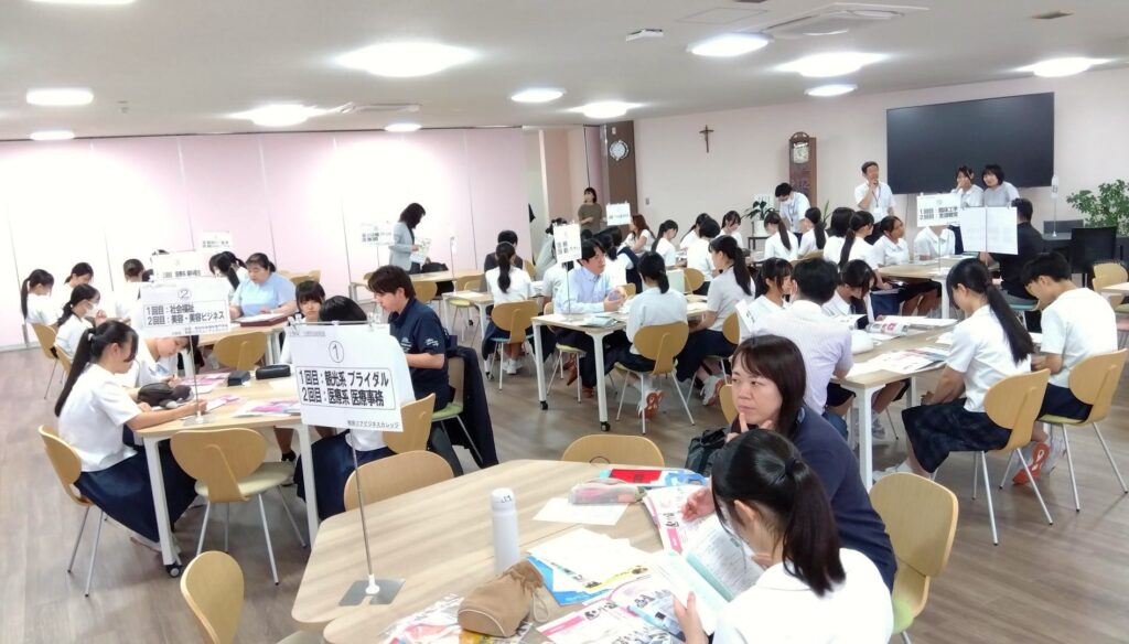 また、ヤンセンホールには、県内外15の専門学校と東北文化学園大学・仙台赤門短期大学がそれぞれブースを設け、少人数対応で和気あいあいとした雰囲気の中、一人ひとりに丁寧な説明をしてくださいました。
