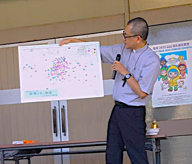 成井大介司教様が司式され、お説教では、「違う文化の人が同じ地域に住んでいるだけでは、まだ“共生”ではありません。相手が大切にしていることを知り、それを一緒に大切にしていくことが、本当の交わりです」というメッセージを送ってくださいました。成井司教様のお説教の全文はこの記事の最後に掲載しています。ご覧ください。