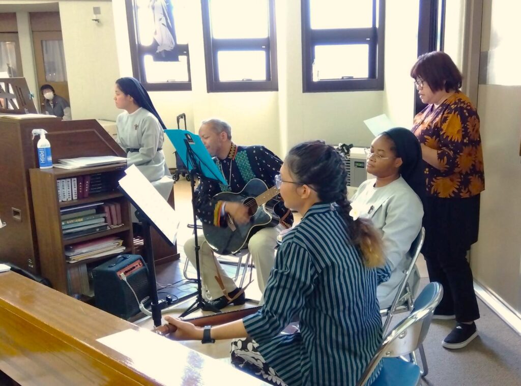 ミサには、秋田で暮らしている多国籍の人々が参加し、聖書朗読や祈り、奉納の行列やギター伴奏つきの聖歌など、それぞれの文化が色濃く表れていました。