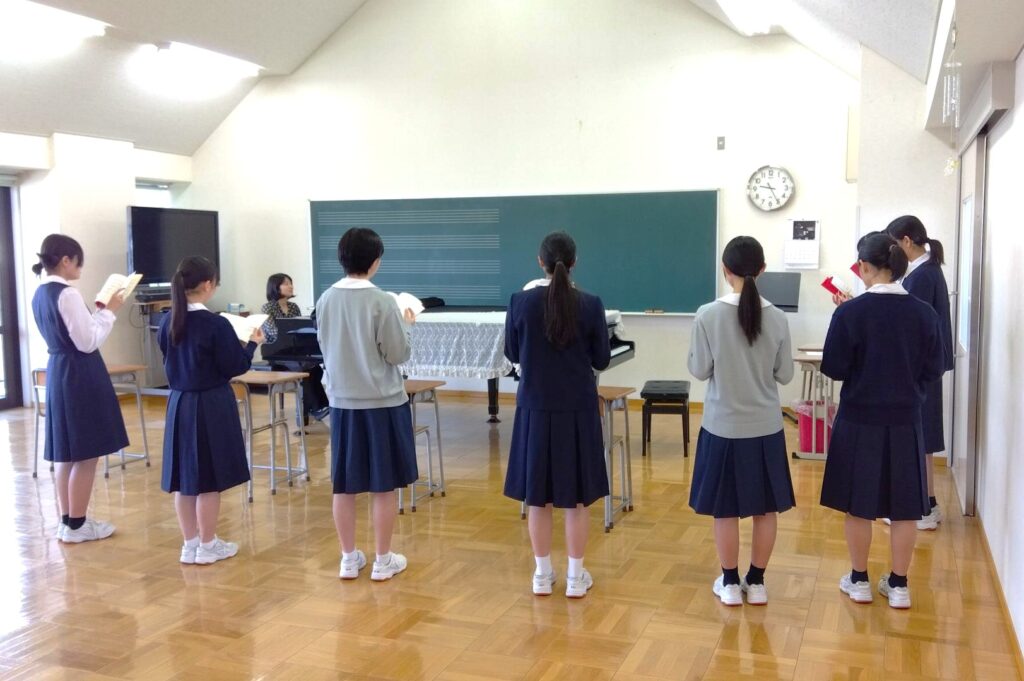 1時間目、校長室で仕事をしていると、5階の音楽室から「ハレルヤコーラス」の歌声が聞こえてきました。歌声に導かれて5階まで上がってみると、1年B組が音楽の授業をしていました。