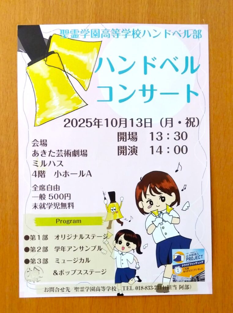 🔔 13日(月・スポーツの日) ハンドベル部コンサート開催!