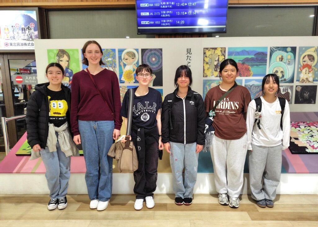 同時に、オーストラリアの姉妹校 Sacred Heart Collegeから3名の短期留学生が、本校で3カ月の学びを共にするためにやってきました。空港では6人が並んで笑顔で写真におさまりました。