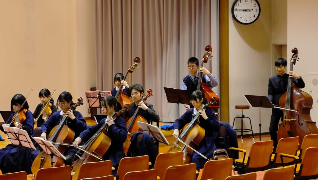 秋の雨が静かに降る日曜日、聖霊学園高校の講堂に響いたのは、プロの音楽家たちが奏でる美しい弦の響きでした。