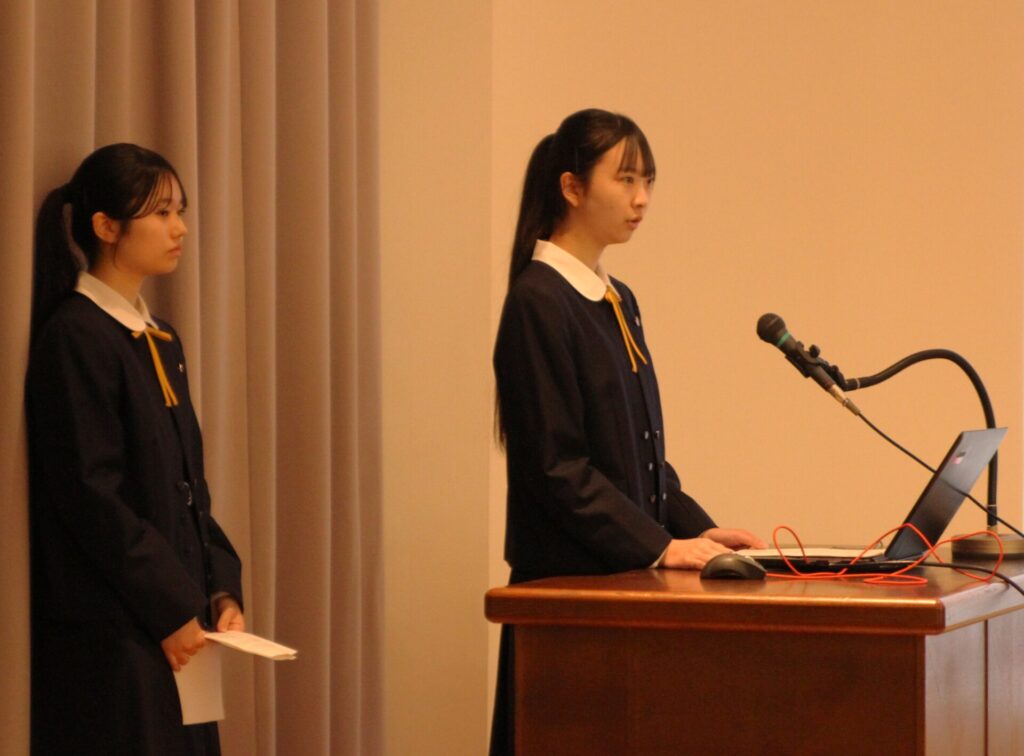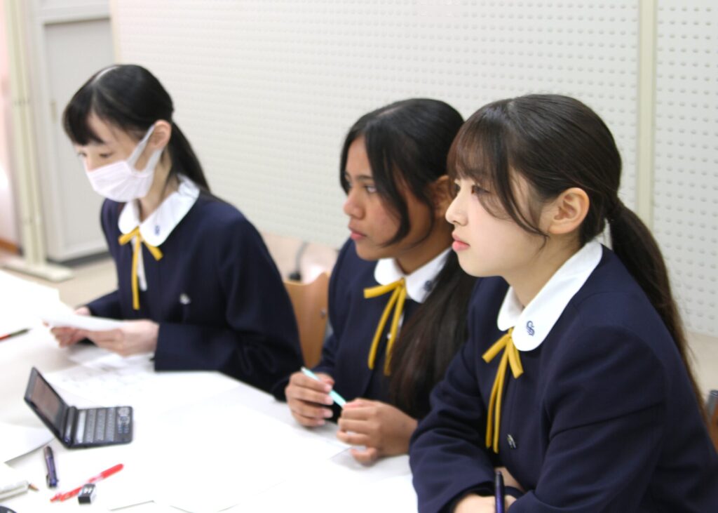 この日、「PDA北海道・東北・四国高等学校即興型英語ディベート合同交流大会2025」(一般社団法人パーラメンタリー・ディベート人財育成協会主催)がオンラインで開催され、本校国際コース2年の 鎌田ひなたさん、松本英理奈さん、髙橋紅羽さん の3名が出場しました。