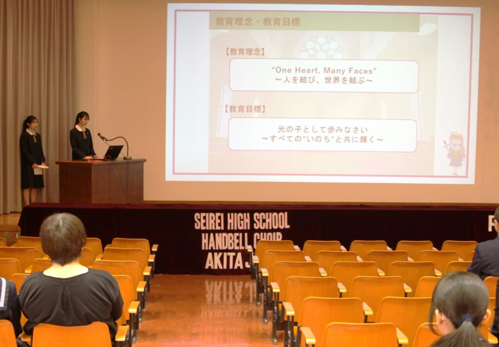 続いて、校長挨拶、生徒2名による学校紹介、教務チームによる入試説明と続きました。参加した中学生の皆さんにとって、ここで過ごす3年間の姿を具体的に思い描く時間となったことでしょう。