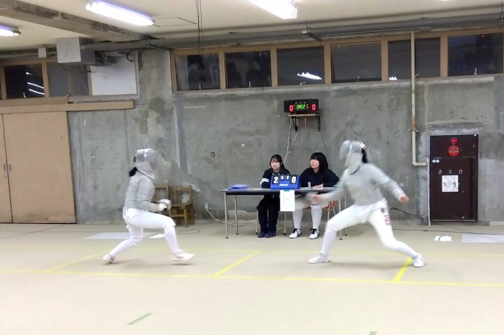 写真は本校1年生同士の対戦の一コマ。高校入学後にフェンシングを始めた生徒も奮闘し、見事な成長を見せてくれました。