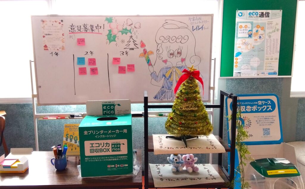 生徒会中央委員が運営するルーチェラウンジでは、全校生徒の意見を集めながら、「みんなで創るクリスマス」に向けて準備が進んでいます。来週は「大リース作り」や「イルミネーション点灯式」も予定されています。