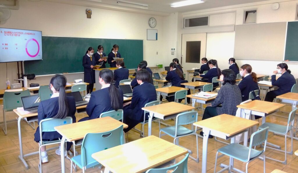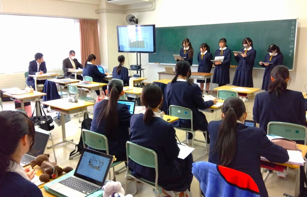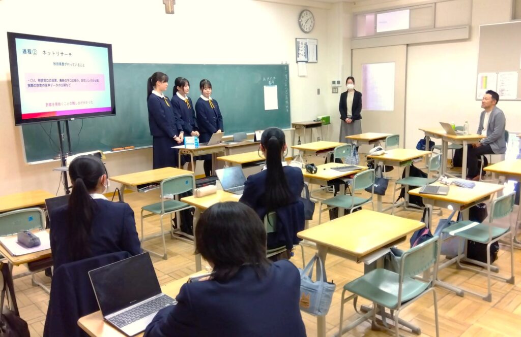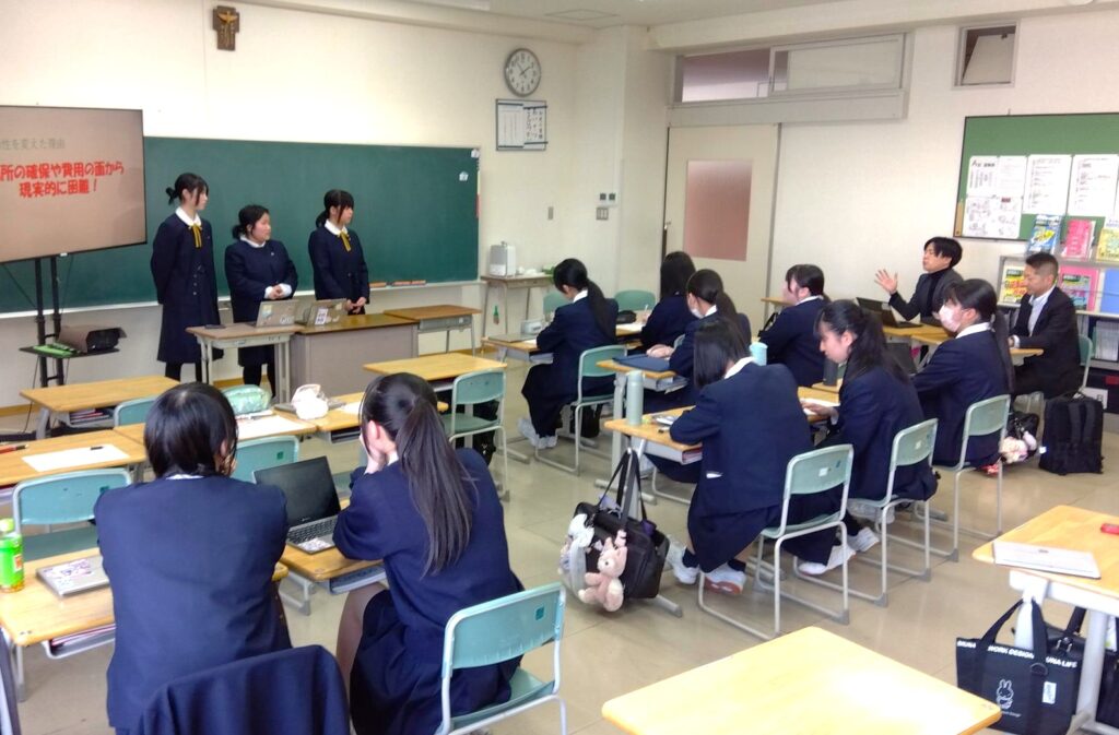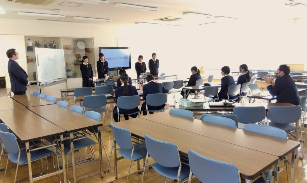 生徒たちは、互いの発表に耳を傾け、真剣な眼差しでメモを取り、良い点を認め合いながら改善のヒントや新たな視点を交わし合っていました。感想や質問、助言を気軽に伝え合う姿は、「共に学び合う」前向きな学びの環境を生み出しています。どのグループも、次のステップへと続く具体的な課題を見出したことでしょう。学年末の発表が楽しみです。