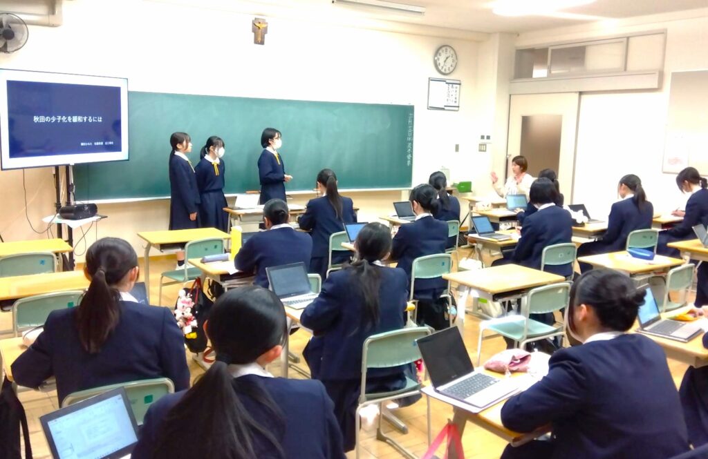 看護医療コースの全学年を対象に、秋田大学大学院医学系研究科の藤田智恵先生をお迎えし、「保健師の仕事と使命」についてご講話をいただきました。保健師の役割や求められる資質、そしてその道に進むための学びについて、具体的な体験を交えながらお話しくださいました。