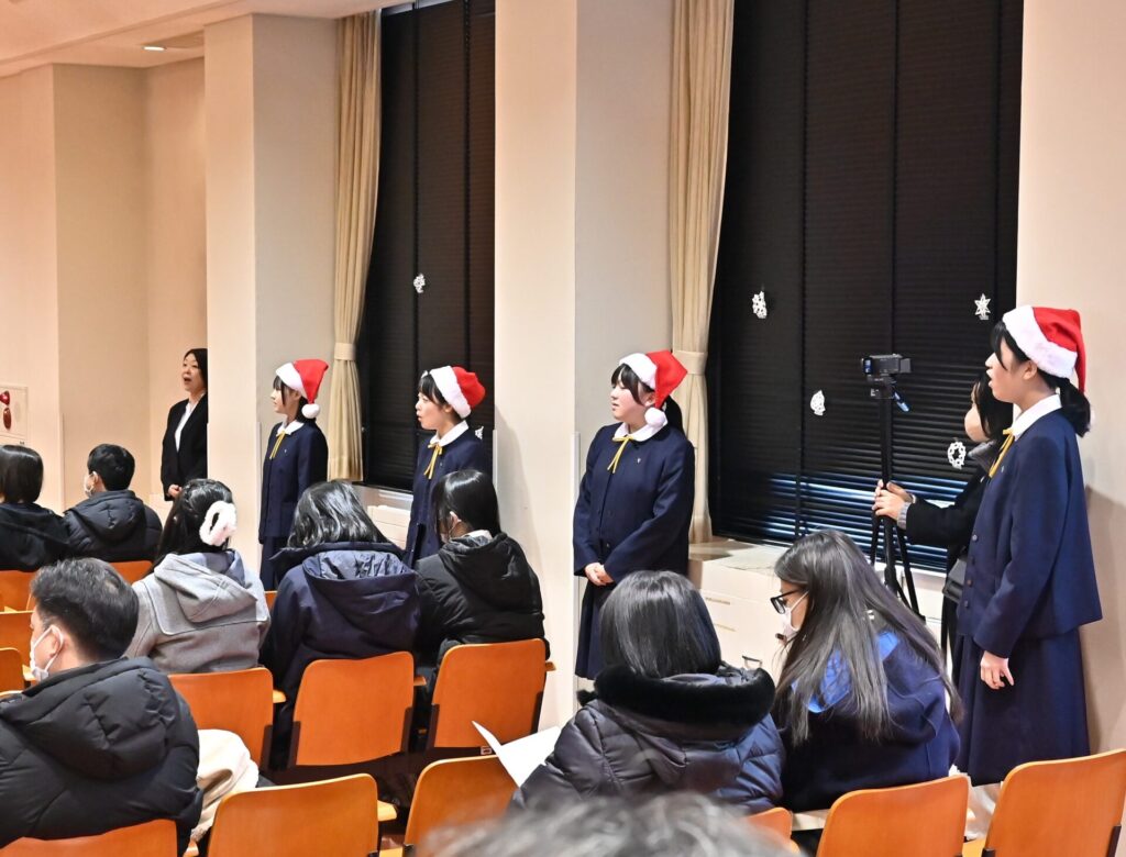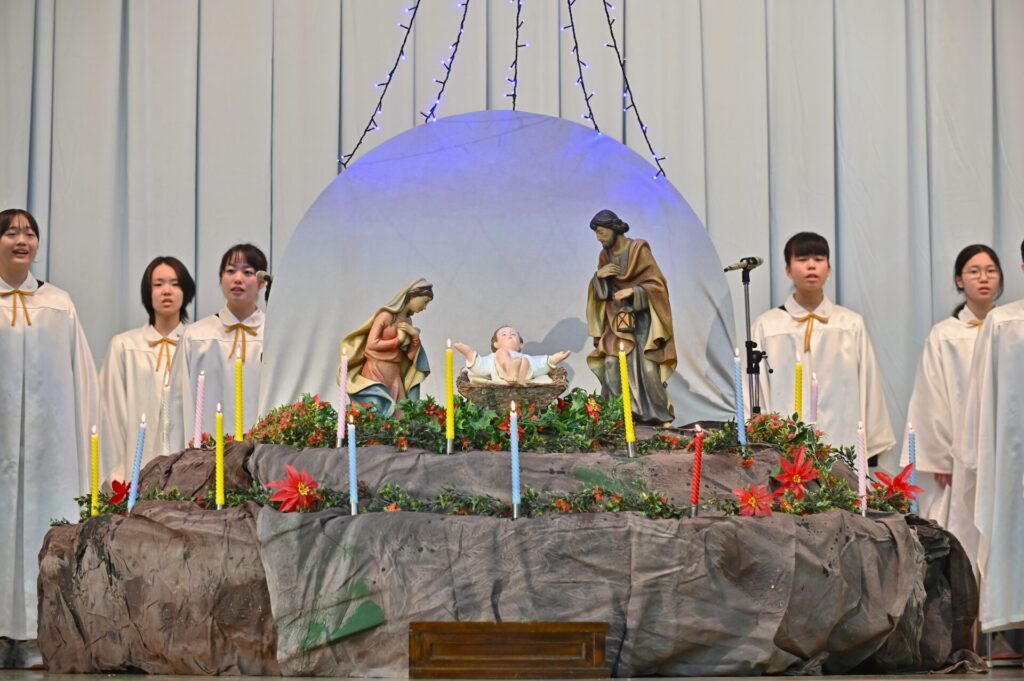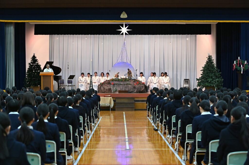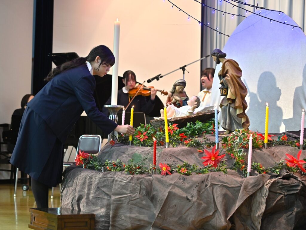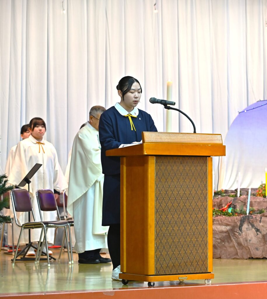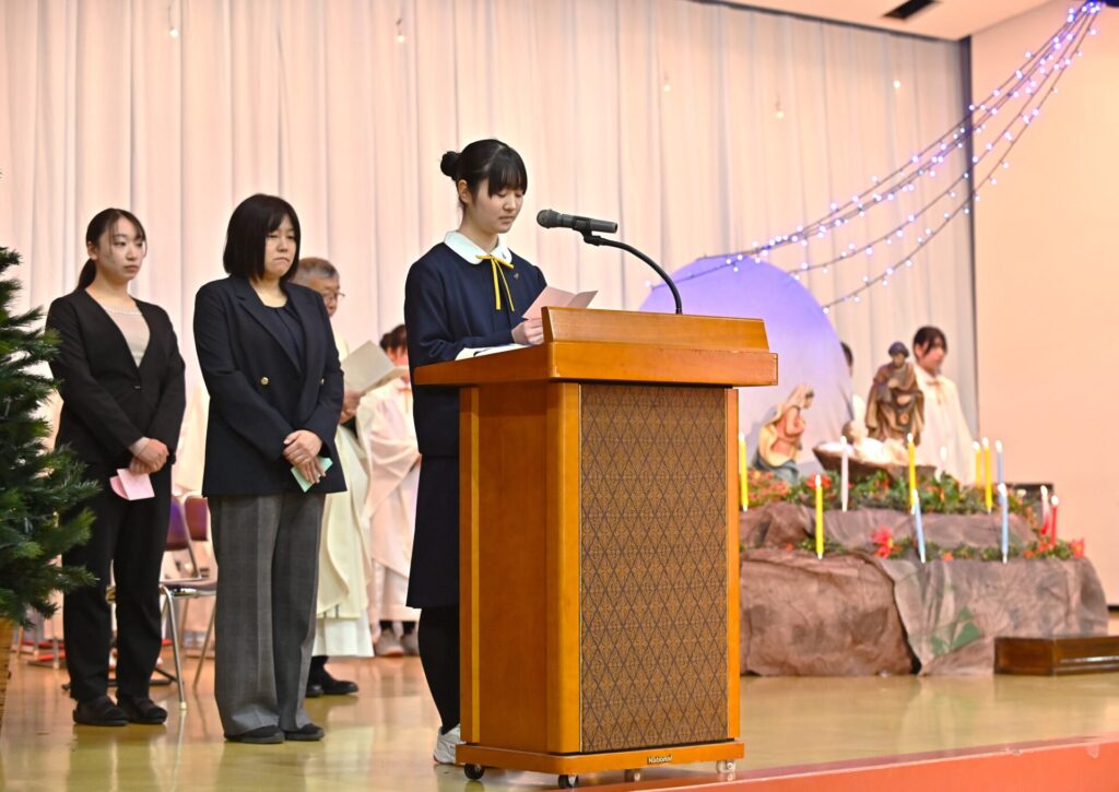 各学年と教職員の代表による共同祈願では、光の子として歩む私たち一人ひとりが、このクリスマスに大切にしたい希望と平和への願いに、心を合わせました。