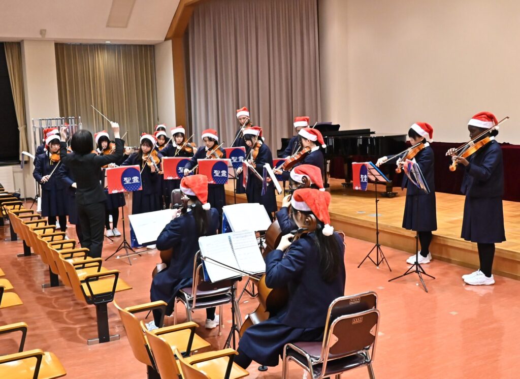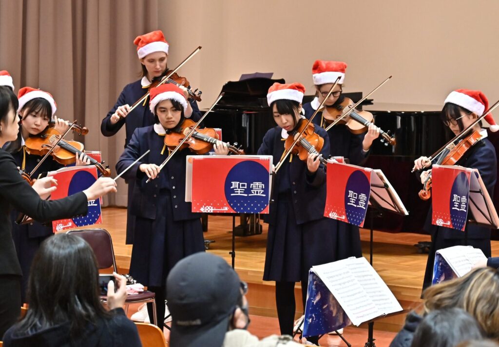 フィナーレは、聖歌「諸人こぞりて」と「ハレルヤコーラス」の全校合唱。