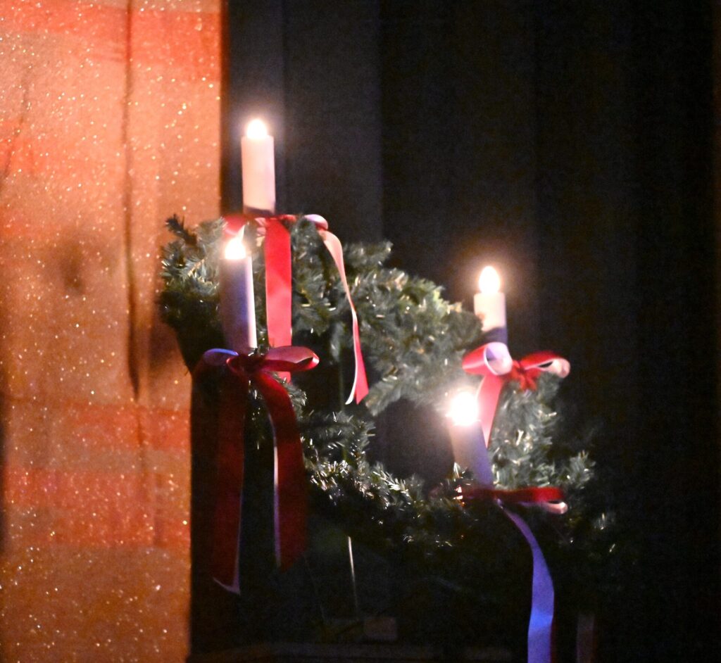 体育館は、静かな闇に包まれ、アドベントクランツのろうそくの光が灯ります。