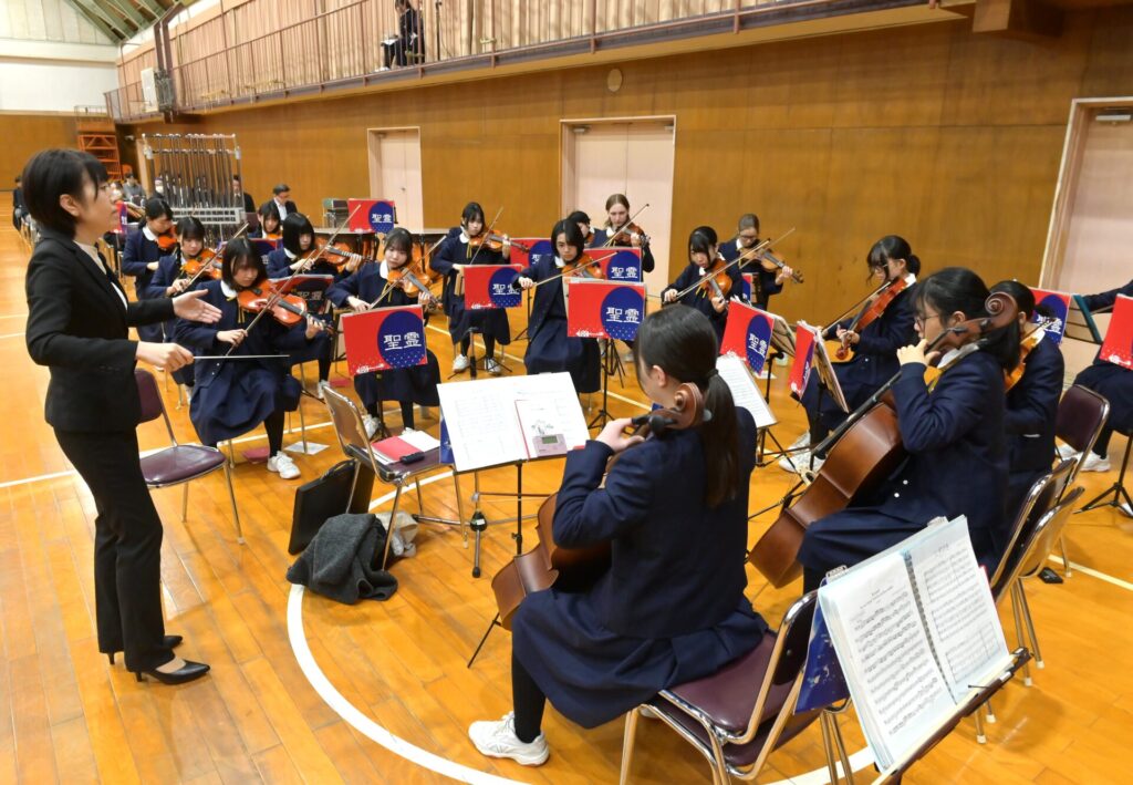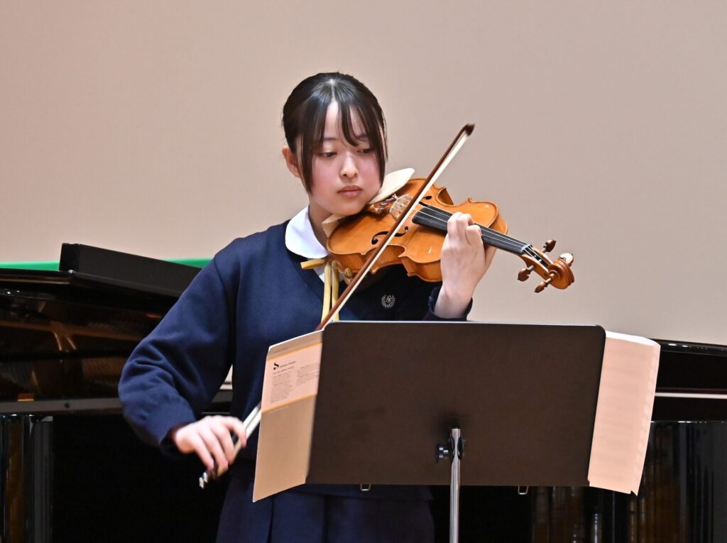 最後は室内楽部。3人の留学生も加わり、弦楽器を始めて間もない生徒たちが、大きなステージを楽しんで演奏する姿が印象的でした。成長した姿に、温かな拍手が送られました。