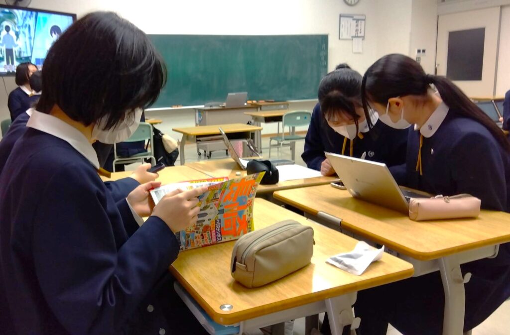 タブレットやガイドマップを囲みながら、真剣な表情で考える生徒たち。問いかけに応じて考えを深めていく姿からは、「旅」を通して学ぼうとする主体的な姿勢が感じられました。