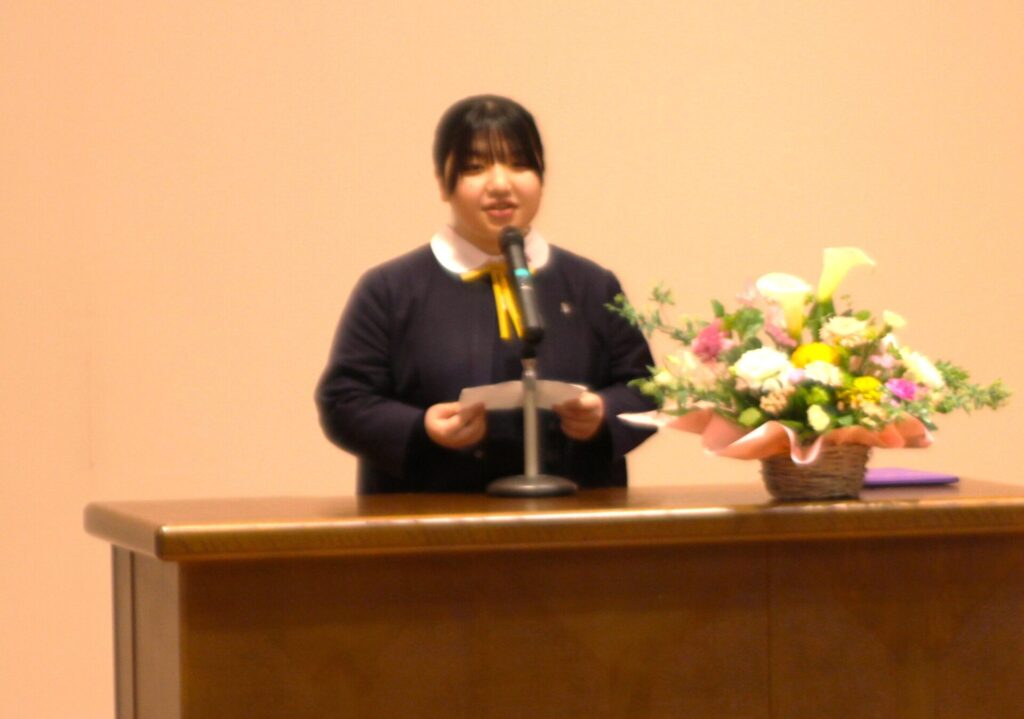 代表して前生徒会長・渡部未宙さんが、感謝の言葉を述べ、式は温かな拍手のうちに結ばれました。
