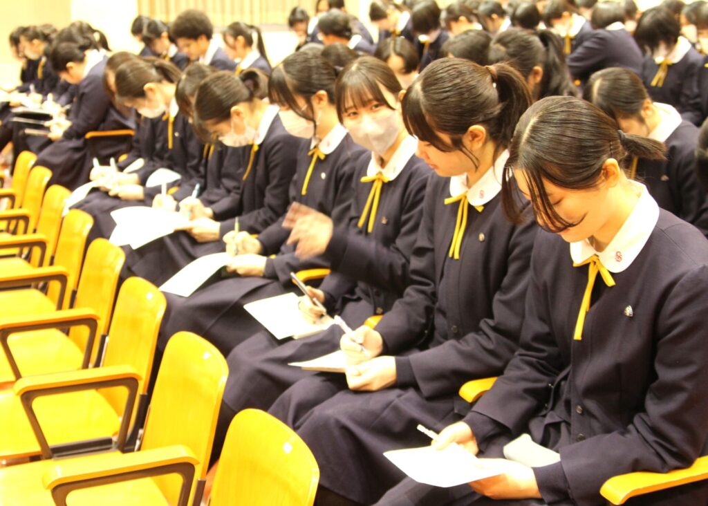 生徒たちは、真剣なまなざしで話に耳を傾け、要点を書き留めながら、