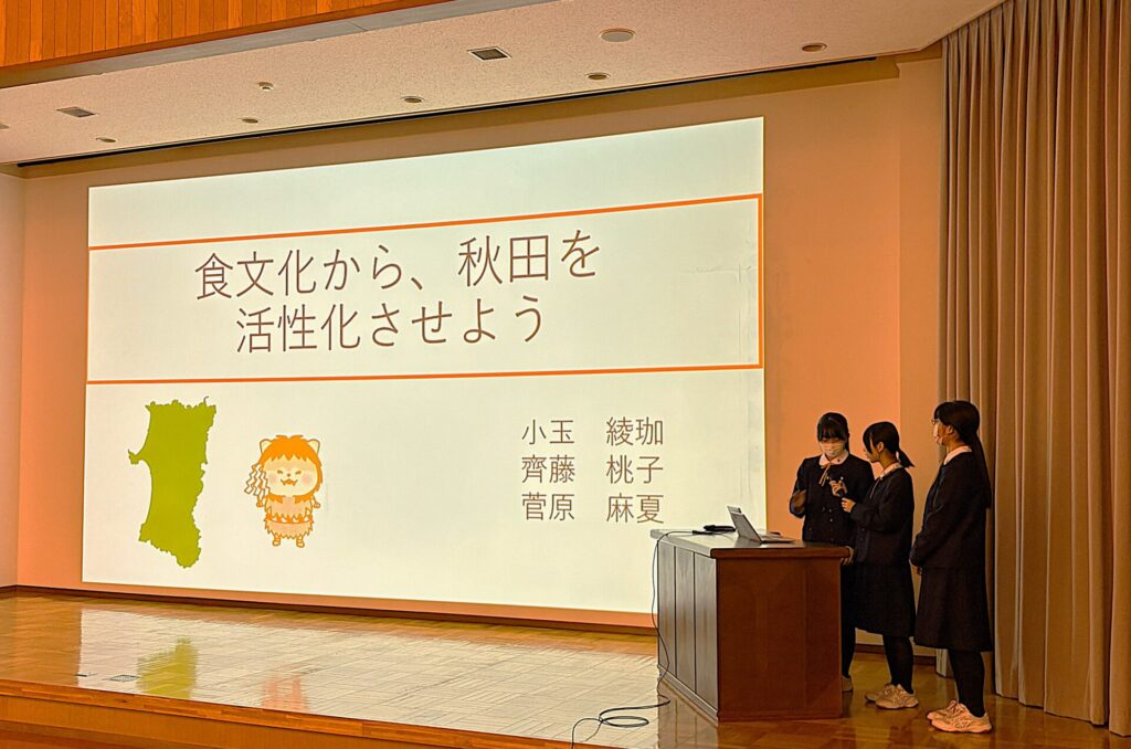 審査員には、ノースアジア大学総合政策学部の湯澤 真先生、秋田銀行 地域価値共創部の三浦 玲先生をお迎えしました。本校主幹の戸堀 裕孝先生も加わり、生徒一人ひとりの問いに真摯に耳を傾けながら、内容の深まりや社会への広がりを温かく、かつ的確に見つめてくださいました。本校に足をお運びいただき、生徒の学びを支えてくださったお二人の先生方に感謝いたします。