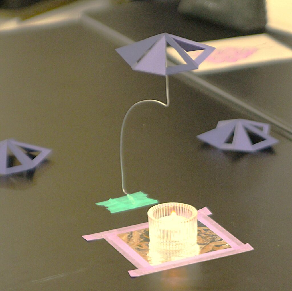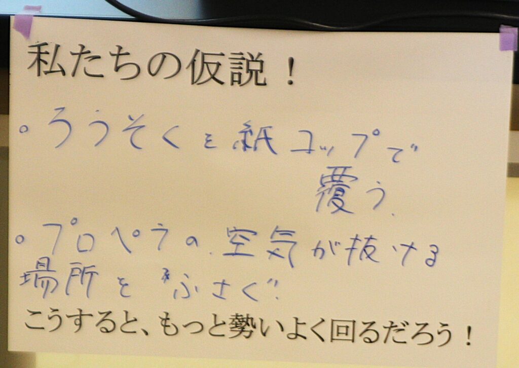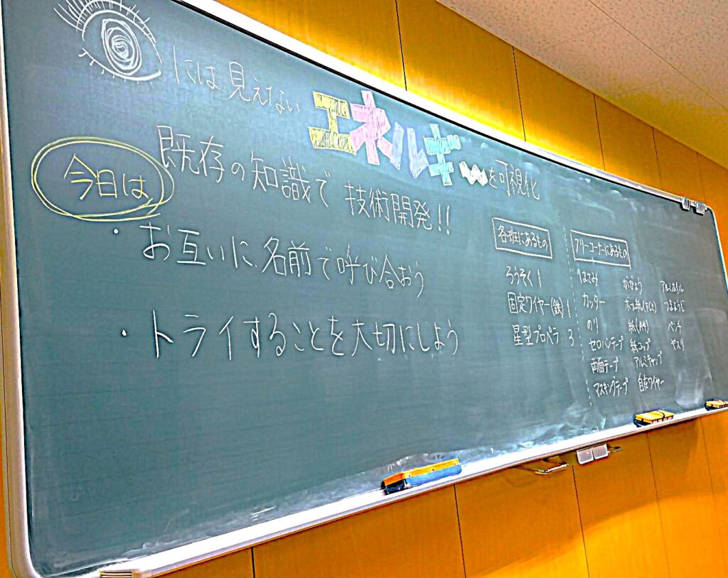目に見えないエネルギーの流れを実験を通して可視化する試みに、中学生も参加した先生方も興味津々。