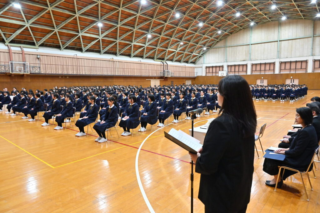 校長式辞、来賓祝辞と続き、生徒会長からの歓迎の言葉が新入生をあたたかく迎えます。