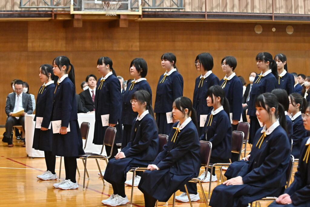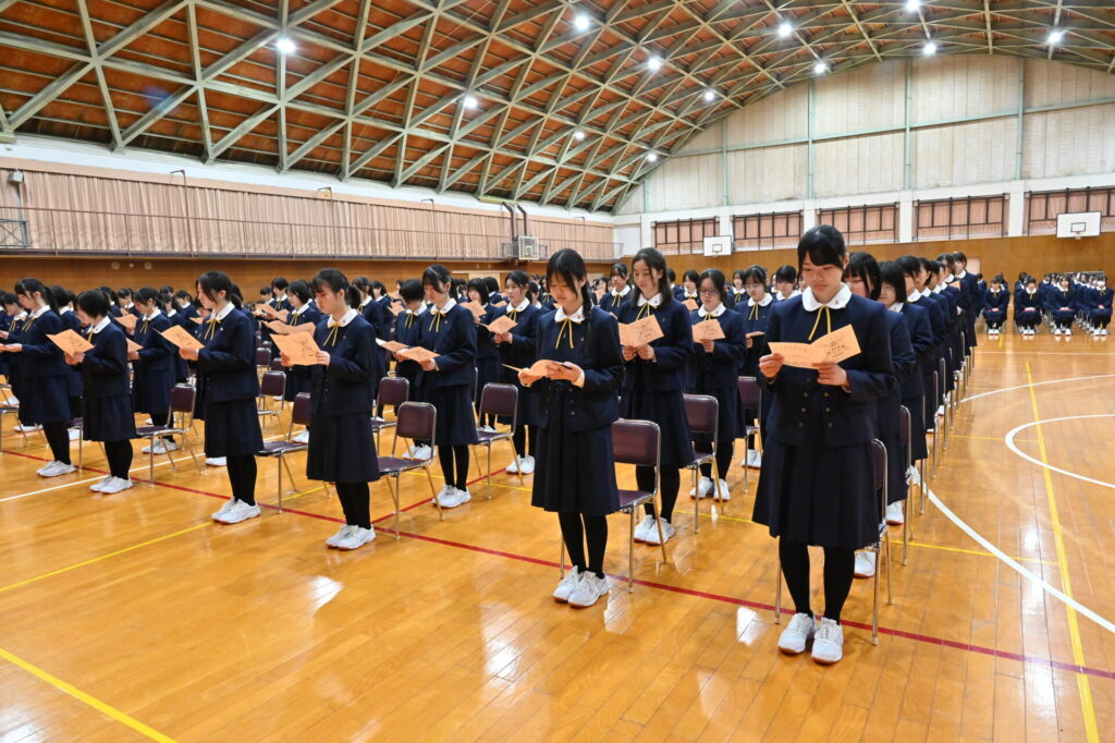 教室では、少し緊張した面持ちで、式の流れを確認する姿が見られました。
