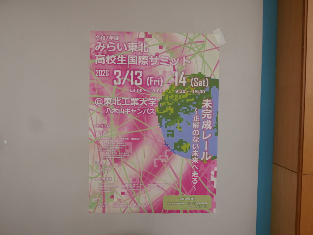 3月13日・14日に東北工業大学で開催された「みらい東北高校生国際サミット」に、本校から実行委員2名と発表者2名が参加しました。