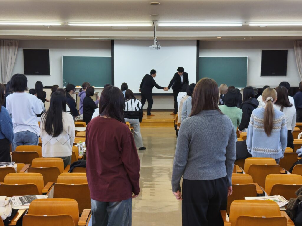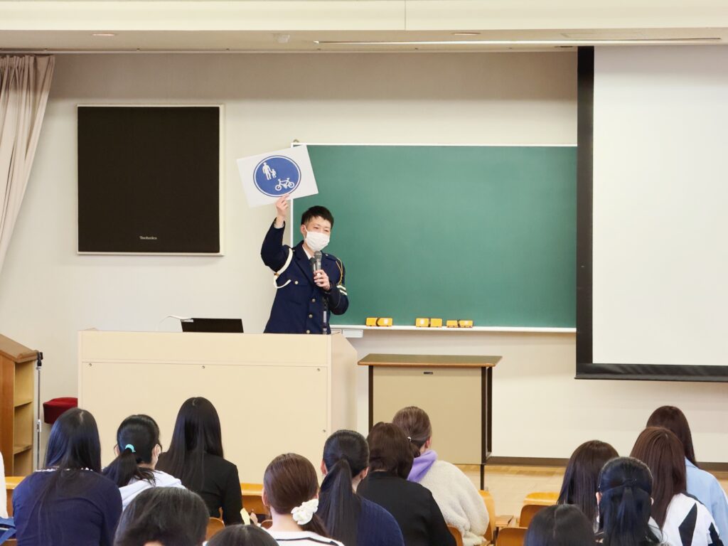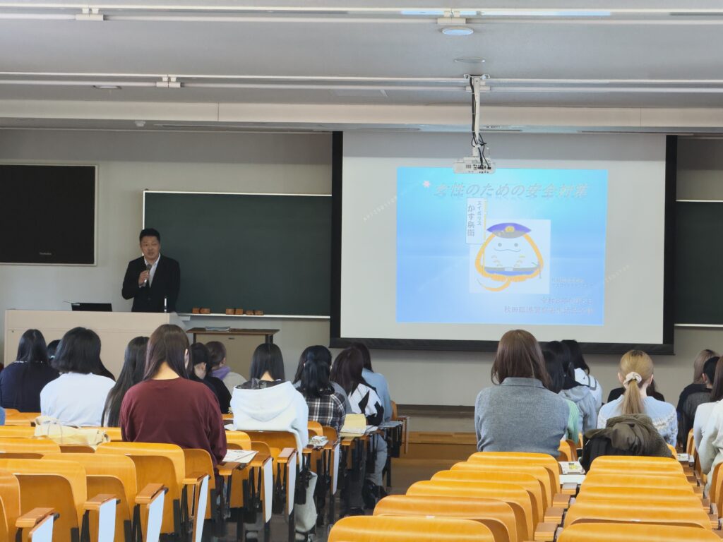 4月8日(火)、学生部主催のアセンブリーを実施しました。新たな生活を始めたばかりの1年生を対象に、秋田臨港警察署の警察官をお招きし、「女性の被害防止」をテーマとした講演を行いました。