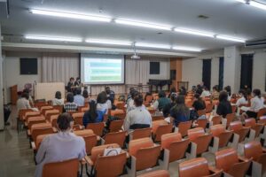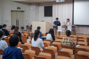 2025年9月18日(木) 午後1時5分~午後3時00分、本学ヤンセンホールを会場に、「秋田県保育研究優秀演題発表」と「園長シンポジウム」を開催し、本学生活こども専攻1・2年生が参加しました。