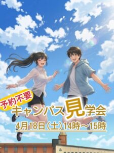 実際に授業で使う教室や実習室をご案内しますので、「まだ進路を迷っている」という方には新しい選択肢を見つけるきっかけに、「ここで学びたい」と考えている方には進学後の自分をより鮮明にイメージできる機会になるはずです。